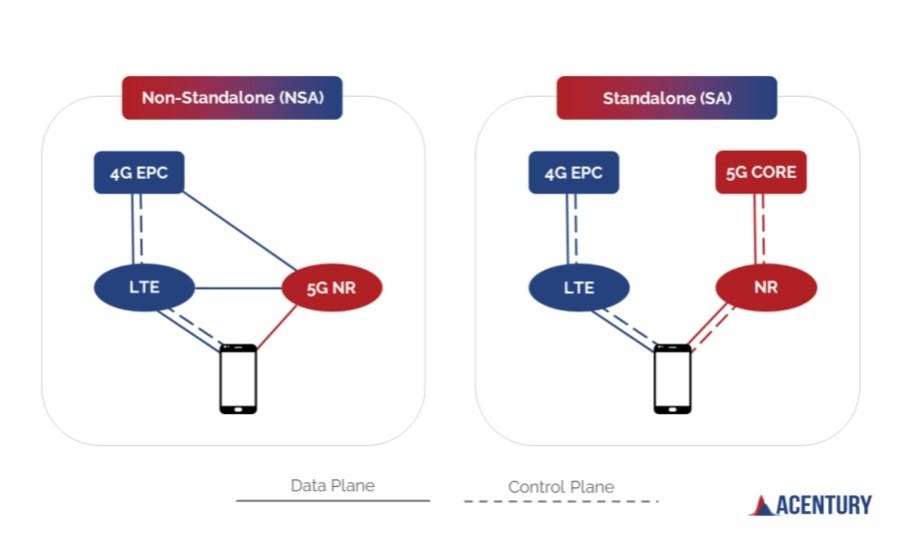 In NSA mode, the radio unit is 5G-enabled, but the control plane is still designed primarily for 4G purposes. While this is faster than a pure 4G network, it can’t deliver the truly new features that 5G was designed for. Standalone 5G, by contrast, builds an entirely new network from scratch, with both the radio units and control plane being 5G-enabled. This is what enables the full potential of what 5G can do.