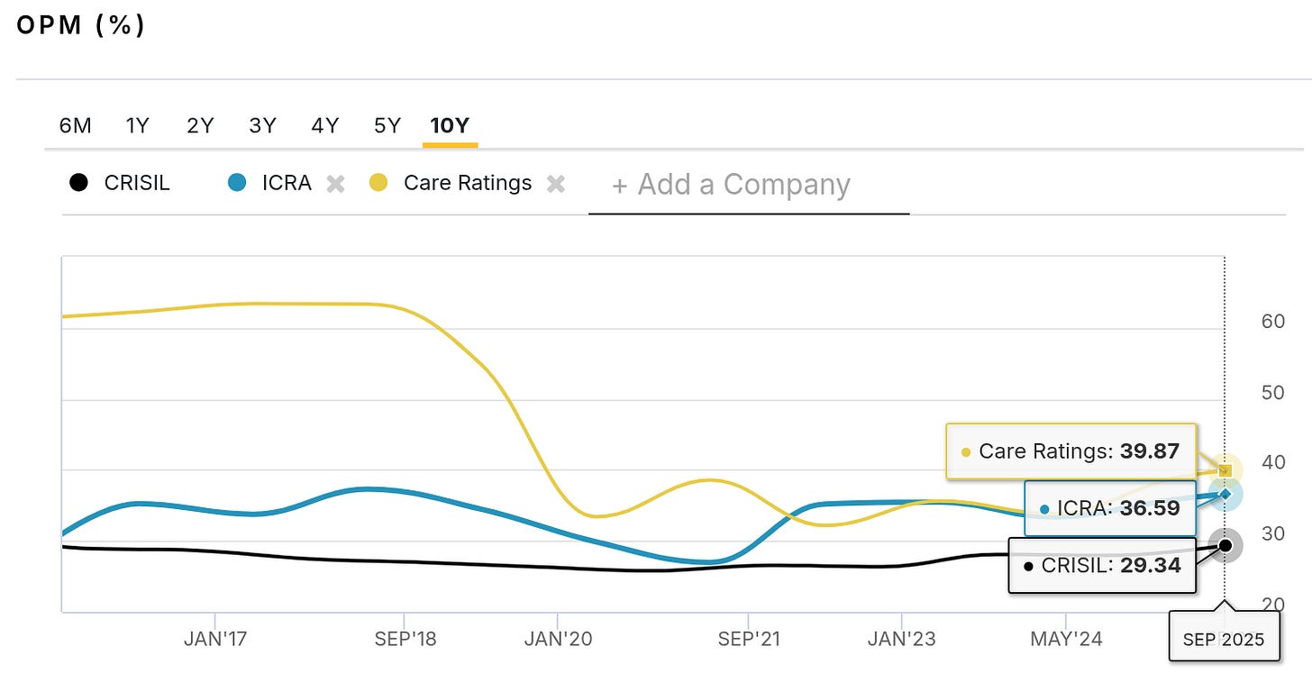 ICRA (linked to Moody’s) and CARE Ratings are also respected, but Crisil’s rating processes and scale give it an edge in reputation. This isn’t something you’re likely to see in an official report, but it’s common market chatter. And reputational edge is everything — it’s why the top three keep the top three spots and the others fight over scraps.