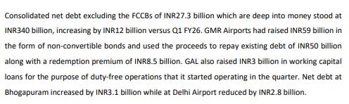 The third reason is one we briefly mentioned earlier: airports are debt-heavy businesses that also depreciate. Terminals, runways, parking structures—all require massive upfront capital, typically funded by debt. And that debt servicing often needs raising more debt — GMR, for instance, is still paying off its old loans by raising new bonds.