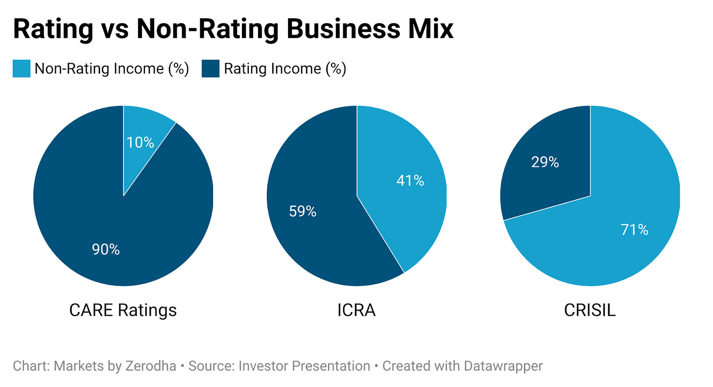 A CRA’s business mix, then, is a matter of what trade-offs it will accept. CRISIL, for instance, sees 70% of its business come outside ratings.