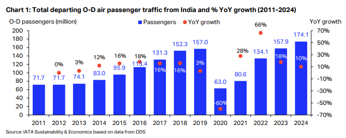 India’s airports are busier than they’ve ever been. Between 2011-2019, they logged an impressive double-digit growth rate, reaching a peak of 157 million passengers in 2019. While CoVID-19 dampened global air travel, India rebounded strongly in just 3 years. And it’s expected to continue its excellent run.