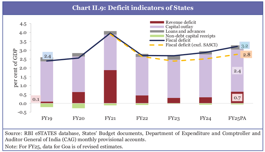 India’s state governments are spending way beyond what they earn, running ever-larger deficits. In FY 2025, their fiscal deficits touched 3.2% of India’s GDP — well higher than they were before the pandemic.