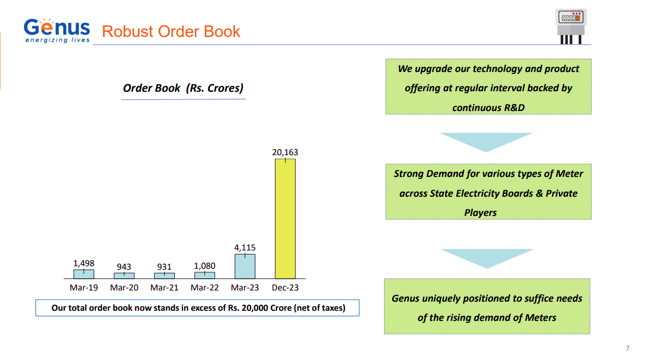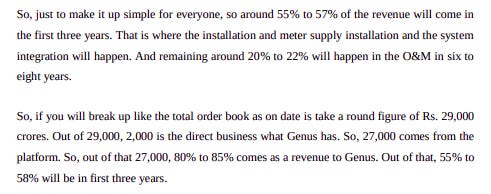 This SPV places bids with the government for contracts. Genus supplies meters exclusively to these SPVs, booking those manufacturing orders immediately. The SPV does all the installation and servicing, funded primarily by GIC’s capital.