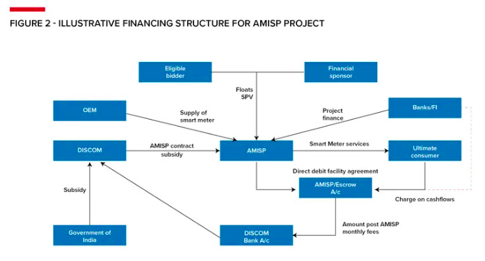 Through competitive bidding, AMISPs would be given concessions for a discom area. There, they would finance meter procurement, handle installation for all consumers, establish communication and IT systems, and maintain the whole set up.