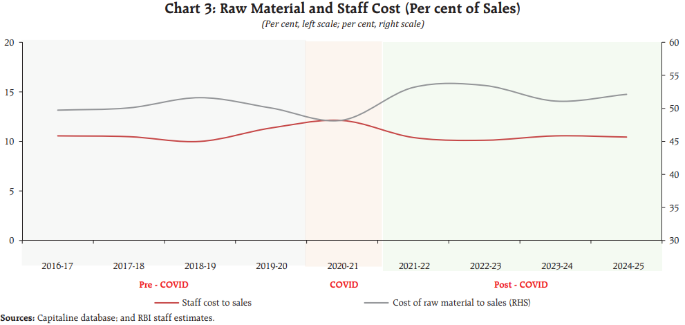 But their recovery was far from straightforward. While demand had returned, their expenses went back up as well. Commodity prices increased once again — even rising somewhat as many supply chains frayed. In FY 2022, their raw material expenses jumped back up, by 47.6% year-on-year. Staff costs, too, were up in the double digits. In the years since, companies’ personnel costs have gone back to where they were before the pandemic, while their raw material costs actually inched up from the pre-pandemic trend.