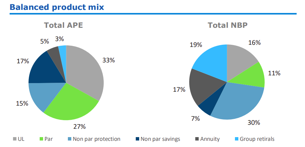 Just to put this in context: take HDFC Life’s FY25 product mix. Over 60% of its Annualised Premium Equivalent (APE) comes from just two product categories — Participating policies (traditional savings plans with bonuses) and Unit Linked Insurance Plans (ULIPs).