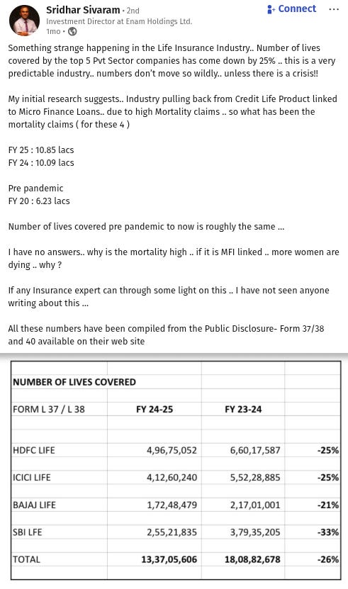 It’s true. In FY25, around 5 crore people lost life insurance coverage, nearly a quarter of all lives covered the previous year. That’s not a rounding error—it’s one of the steepest year-on-year declines ever.