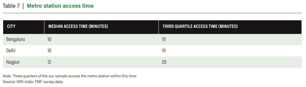 A WRI India study that surveyed 7,200 commuters across Delhi, Bengaluru, and Nagpur found that commuters are only willing to spend about 20 minutes total — including waiting time — on the first and last legs combined. Beyond that, most give up. And that threshold is consistent across income groups and cities.