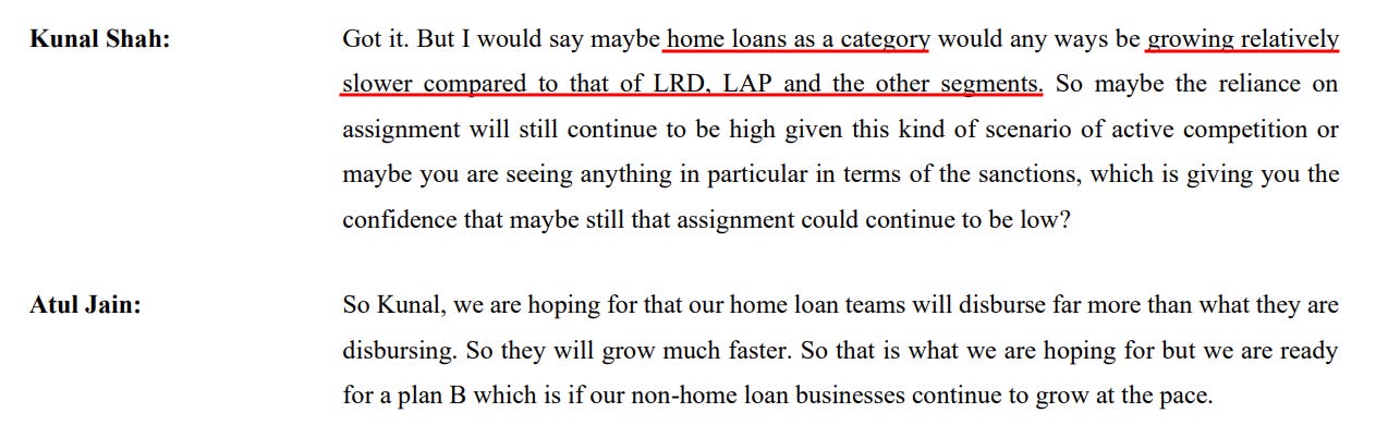 Take Bajaj Housing Finance, one of India’s largest listed HFCs. On its investor call, the company’s management acknowledged that traditional home loans are lagging, and that they had to pivot to non-home loan segments for growth.