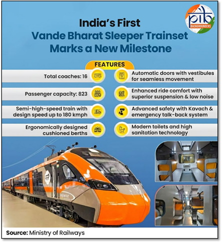 The sleeper variant was launched in January 2026 on the Guwahati-Howrah route, India’s first long-distance Vande Bharat. It carries 823 berths across 16 coaches. A 24-coach version is in design, and 260 sleeper trainsets are planned.