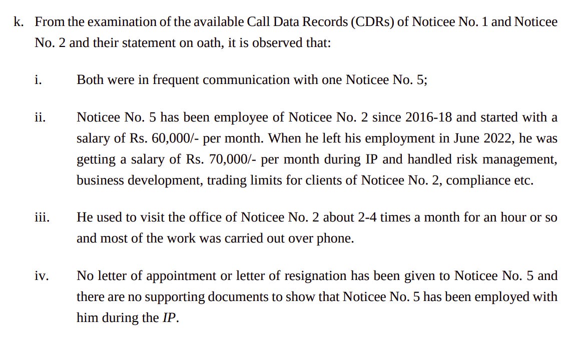 Payments between Kewalramani and Noticee 5, that were categorized as “salary,” were far larger than what their small brokerage business could justify. SEBI eventually concluded that these were not salaries at all, but kickbacks for the information being passed along.