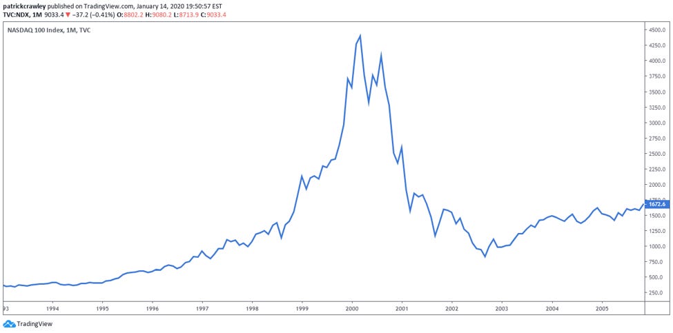 The dot com bubble scarred the psyche of an entire generation of investors, and for good reason. It was perhaps the most remarkable example of a pattern you see with practically every impressive piece of technology — a mass investor hysteria around an unbelievably good promise, which ends in a sudden and tragic correction.