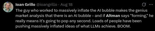 Will OpenAI survive the bubble? We have no clue. But while the good times last, if they spend more on creating good things, and less on promoting themselves, that might not be too bad a thing.