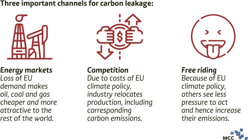 Moreover, global CO2 emissions don’t actually fall — volume production just shifts to countries with looser rules. Economists call this carbon leakage.