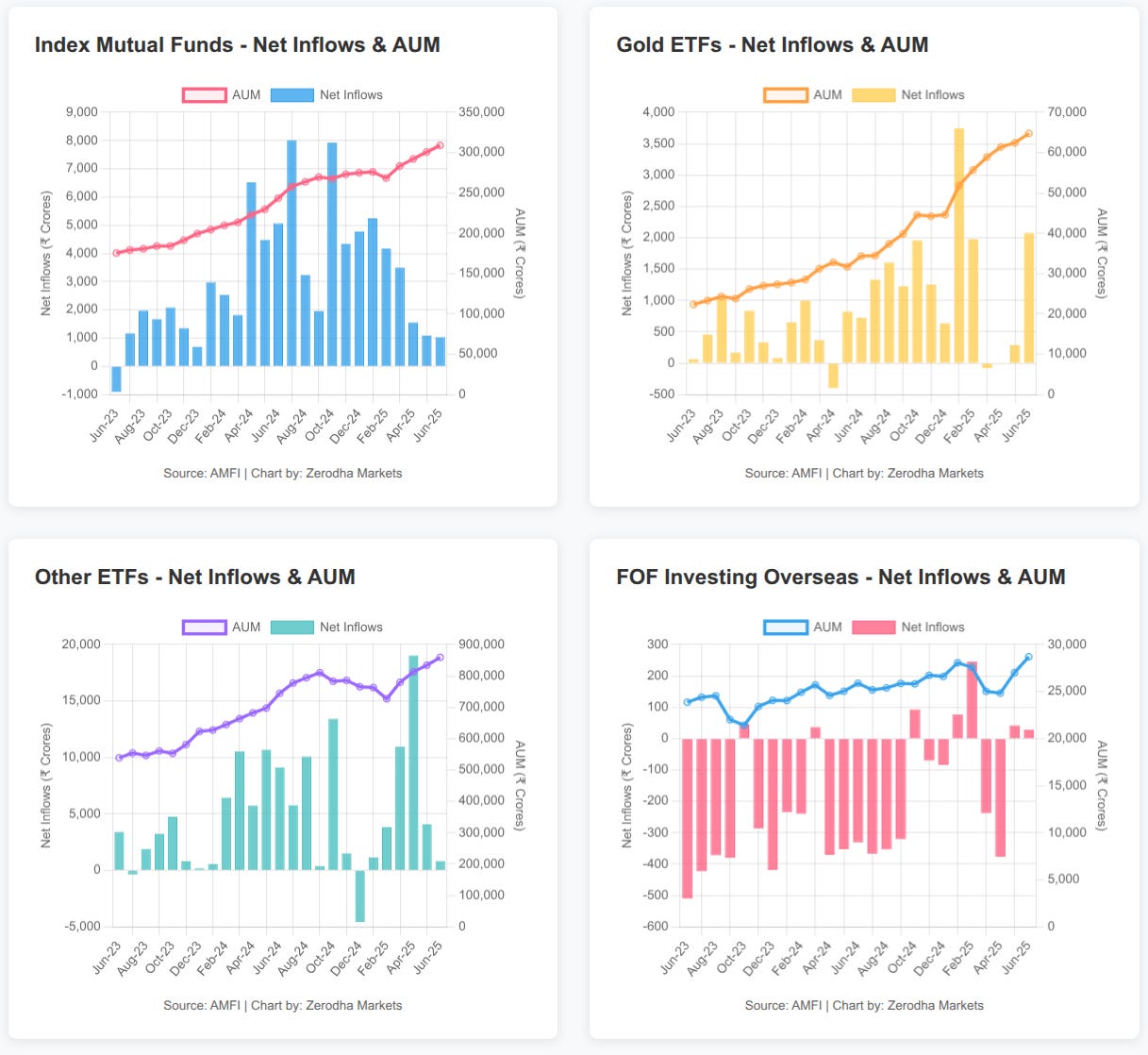 While active equity and hybrid funds continue to see steady inflows, let’s take a look at how passive funds, like index funds, ETFs, and overseas fund-of-funds, are doing.