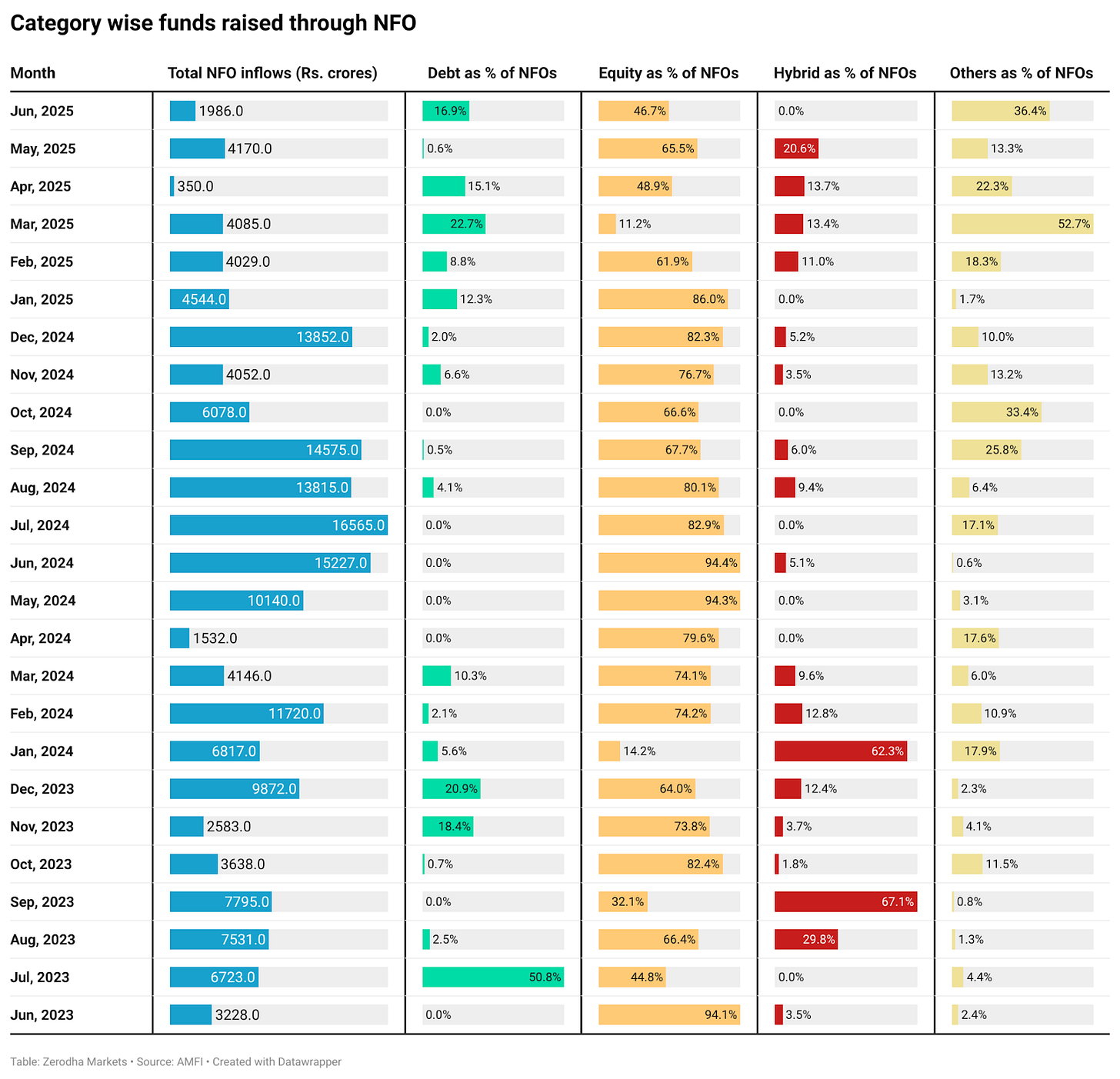 Meanwhile, as the markets have seen some correction and increased volatility, the funds raised through New Fund Offerings (NFOs) have sharply declined. From average monthly collections of ₹10,000 crore in 2024, they dropped to around ₹3,100 crore per month this year.