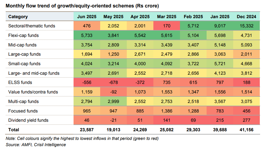 At the same time, categories like flexi-cap and mid-cap funds are still holding up well. Flexi-cap funds have received consistent inflows throughout this year, with June bringing in ₹5,733 crore, the highest among all categories. Other categories that have seen stable inflows have been mid- and small-cap and multi-cap funds.