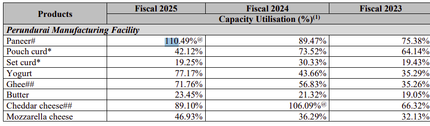 Each factory is designed to operate beyond its normal limits, maybe even using extra shifts. In 2025, their paneer-making machines — all of them in the huge Perundurai plant — ran at 110% capacity.
