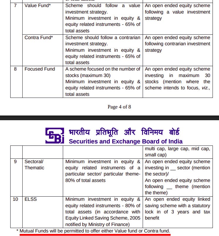 There was a peculiar restriction that SEBI had added in 2017: a fund house could offer either a “value fund” or a “contra fund”, but not both.