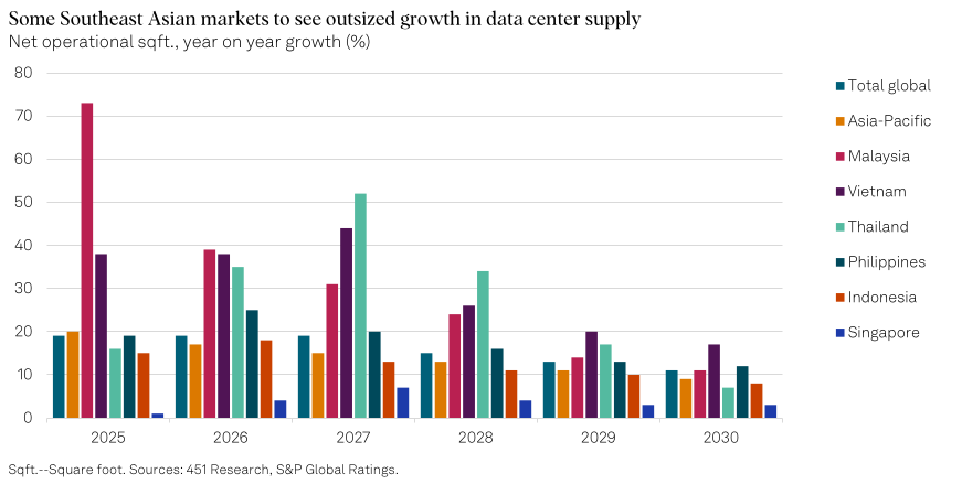 However, the region faces practical constraints: markets in Southeast Asia are already seeing pressure on water supplies for cooling, and competition for power is intensifying—making it increasingly difficult to build and sustain large data center clusters.