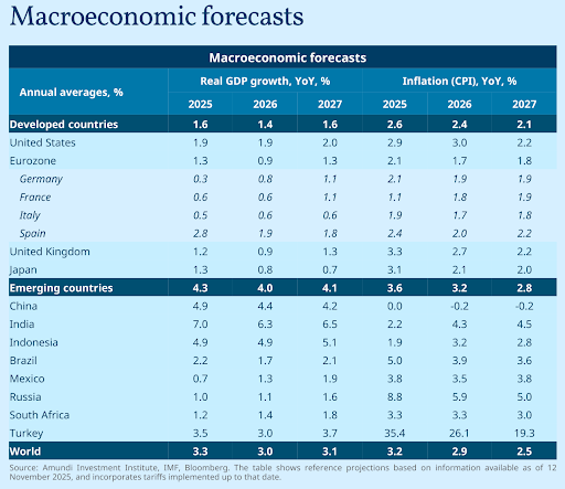 The numbers from Amundi for 2026 make it easier to see how inflation and growth are doing in the world’s biggest economies. They think that the US will grow by 1.9%, the Eurozone by 0.9%, Japan by 0.8%, China by 4.4%, and India by 6.3%. And the CPI inflation will be 3.0% in the US, 1.7% in the Eurozone, 2.1% in Japan, slightly negative in China (–0.2%), and 4.3% in India.