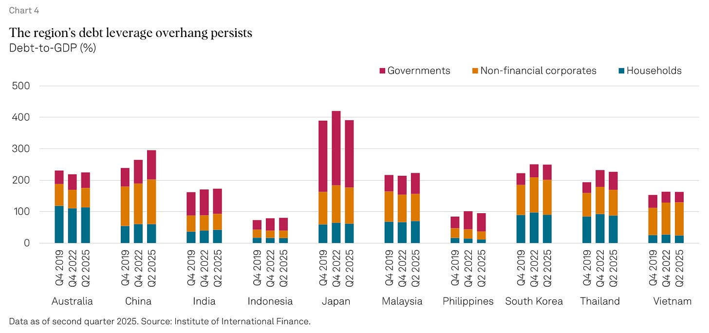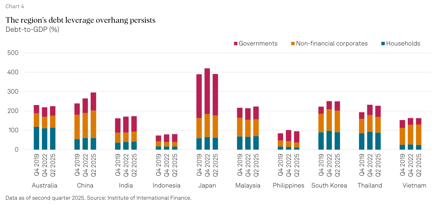 S&P’s Asia-Pacific outlook tells a similar story. Many governments in the region have taken on much more debt since 2019. S&P warns that efforts to cut deficits may stall, as governments lean on spending to deal with high living costs, social pressure, and uneven growth—even if that weakens their balance sheets further.