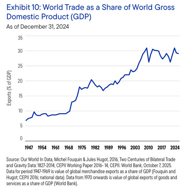 One data point ties this together. Global trade, as a share of the world economy, has barely grown since 2009. But investment into supply chains has surged.