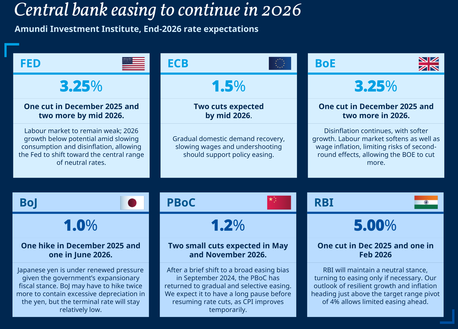 Most outlooks place Europe in an awkward middle spot. Growth isn’t strong, but it isn’t falling apart either. Amundi and Allianz describe an economy that’s being helped by higher spending on defense and clean energy but held back by tight budgets, weak productivity, and ongoing political uncertainty.