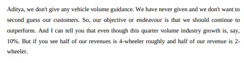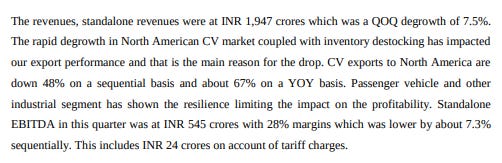 In fact, this quarter, that’s exactly what played out with Bharat Forge’s business. Exports to American CV makers fell, but that fall was made up by growth in the PV and industrial product lines.