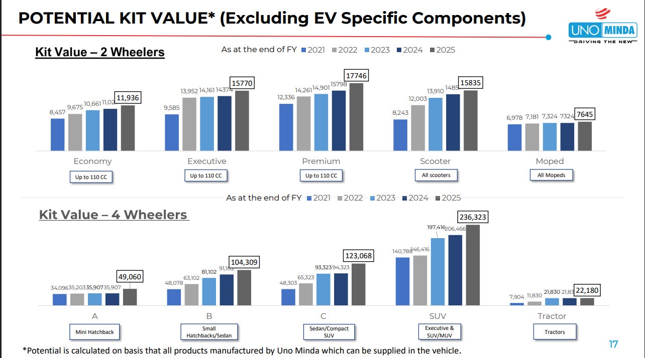 As we’d mentioned in our primer, auto ancillary is a sticky business — automakers don’t like to switch away from a supplier they’ve locked in. Suppliers have used that largely to their benefit. They may start with something as simple as decals and paints, but eventually move up to providing advanced interiors for the cars as well. This upselling and bundling has expanded kit values per vehicle by 3-4 times for certain categories of ancillaries.