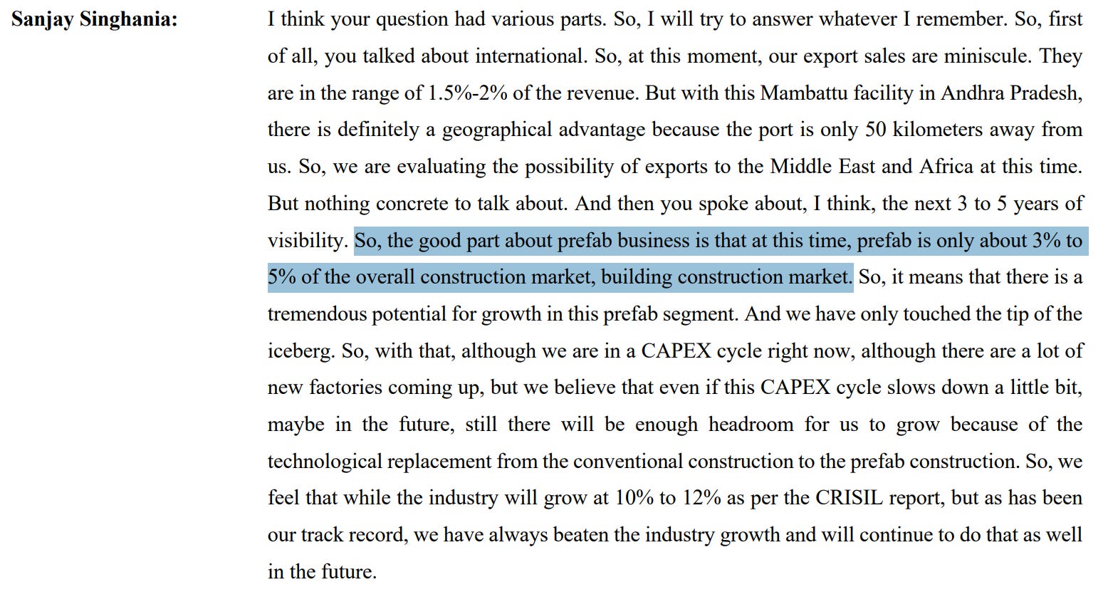So I was going through the concalls of three companies in the prefab space — EPACK, Pennar, and Interarch — and something really stood out to me. Not just what they said, but the way they said it. There’s a certain confidence, almost a sense that they all believe this industry is about to get much bigger than it currently is.