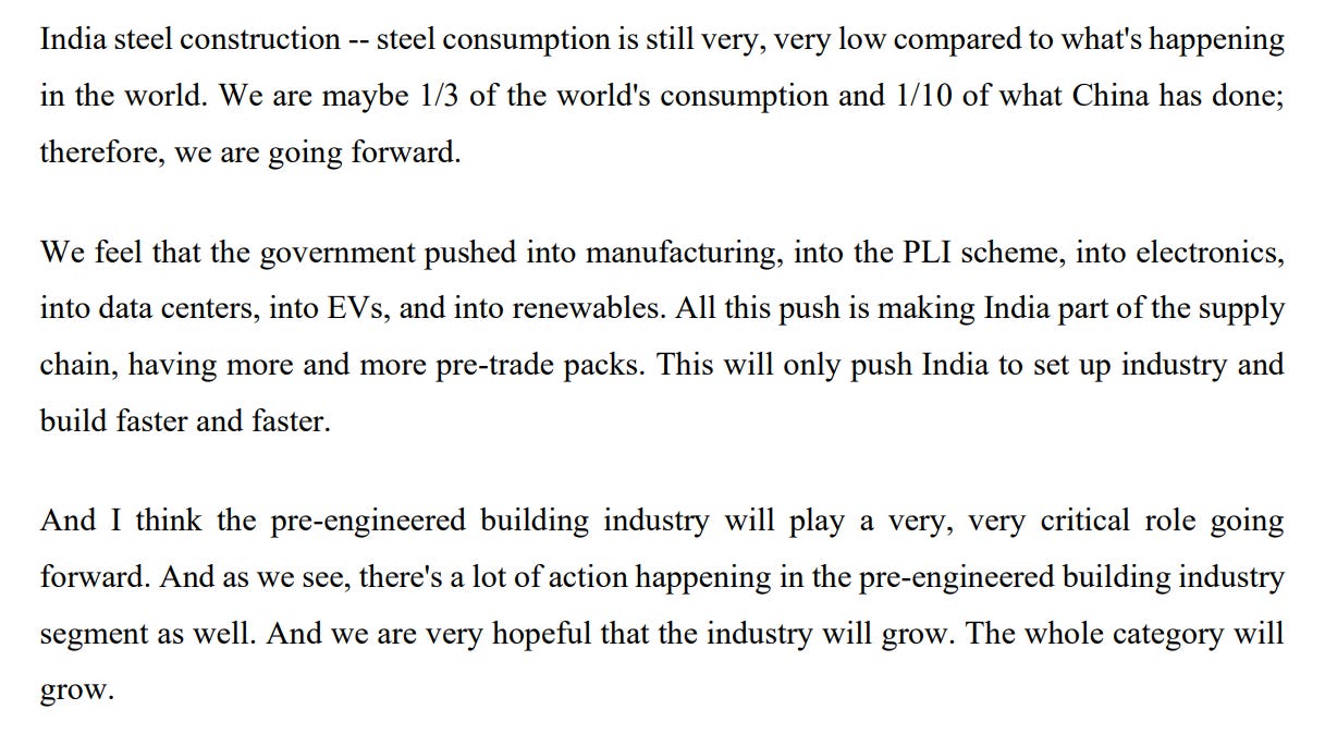 “India’s steel consumption is still very, very low… and the pre-engineered building industry will play a very critical role going forward.”