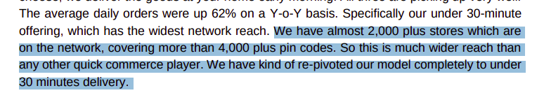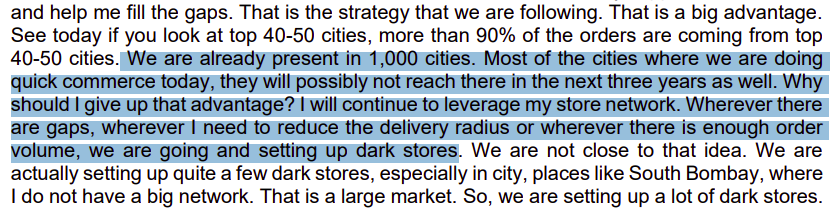 Let’s start with Reliance. In ione of their recent earnings call, the company made a forceful case that it’s uniquely positioned to win this game—not because it’s nailed the 10-minute model, but because it has the widest and deepest physical footprint in the country.