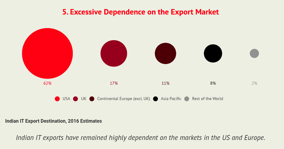 The dominant business model of our large IT companies is exporting low-end technology services to developed nations, based on lower labor costs. It has been excessively dependent on all 3 elements: the type of service, specific regions, and low wages.