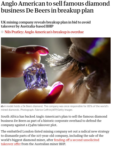 It owns just around 15% of the company. The majority is controlled by Anglo American, which has now publicly said it wants out.