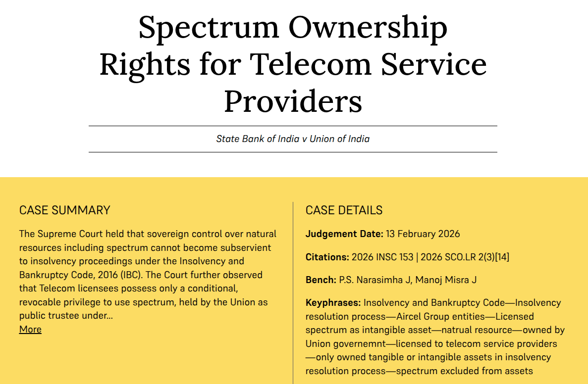 For instance, through this channel, in 2016, Airtel had acquired spectrum from Aircel itself. In the ordinary course of business, the state treats spectrum rights as bankable, tradeable, commercial property. But the February ruling draws a hard line around bankruptcy. Once a company declares it, the same right becomes a sovereign permission that cannot be transferred through the IBC at all.