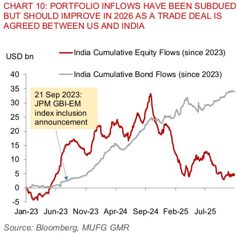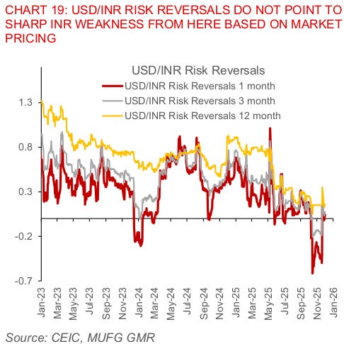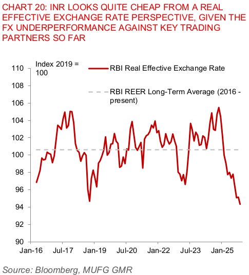 Either way, currently, Indian equity markets don’t have a lot of interest from foreign portfolio investors. That has suppressed what is otherwise a massive engine of demand for the Rupee.