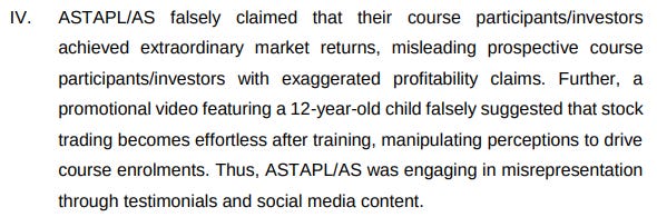 Since this is an interim order, things could get far worse from here. In fact, the interim order has some complaints for which concrete evidence hasn’t been found. One such complaint is that ASTA used a 12-year old in a promotion video, perhaps to showcase that if a 12-year old can effortlessly trade after a course, so can you.