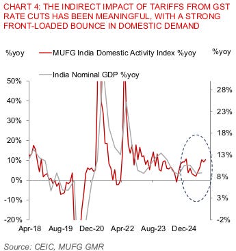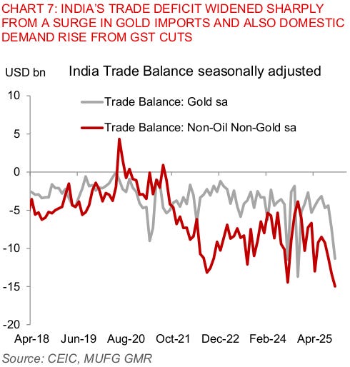 On the other side of the equation, the government just cut GST rates, and Indians responded by making a lot of purchases. Some of those purchases were imported. Many others — such as automobiles — were probably made in India, but using imported parts. In both cases, some money left India.