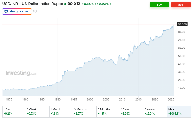 On the one hand, there are many things India buys from the world — like oil, gold, iron, laptops, even subscriptions for services like ChatGPT. Every time an Indian makes such a purchase, they introduce Rupees to the currency markets, creating more supply.