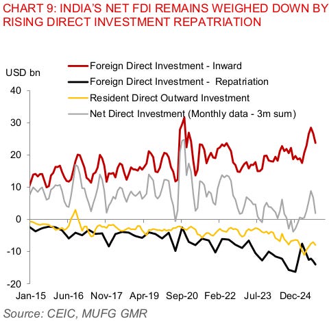 Investors, meanwhile, don’t seem to be warming up on India any time soon. With the most recent rate cut, the Rupee could become less attractive.