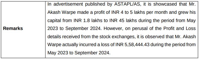 Doesn’t this seem like the easiest way to earn trust? Only if you judged a book by the cover. SEBI found that, in the case of 5 public testimonials available on YouTube, the actual profit earned by the student was far less than advertised. Actually, of the 5 people, only one had recorded a profit. All the rest bled lakhs of losses in the time period advertised in the testimonial. This is as obvious and blatant as fraudulent advertising can get.