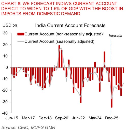 If MUFG is to be believed, given the GDP cuts, Indians are in no mood to pause their buying spree. By its forecasts, our current account deficit will probably widen in coming months — even assuming that the US will soon cut tariffs on our exports.