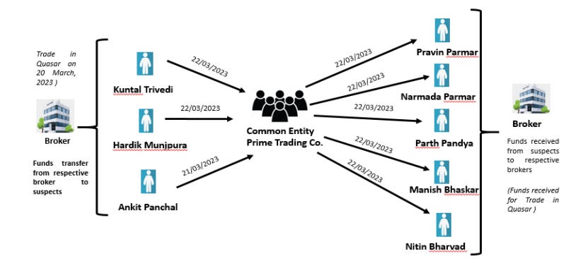 Behind the Quasar’s meteoric rise, it turns out, a group of 20 individuals and entities were pulling the strings. They included a trading firm called Chandrima Mercantiles Ltd., along with numerous individuals with interconnected accounts. These weren’t insiders from Quasar India Ltd., to be clear — they were external operators who saw this small, seldom-traded stock as an opportunity to make a quick buck.