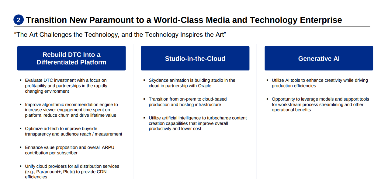 Unlike Netflix, Skydance wasn’t trying to improve distribution. It was bringing technology to film production, incorporating platform-like features in its production workflows. For instance, it’s building a “studio in the cloud” for its animation films, in partnership with Oracle. It also has an advanced advertising-tech stack and a powerful algorithmic system to increase engagement on all its IPs.