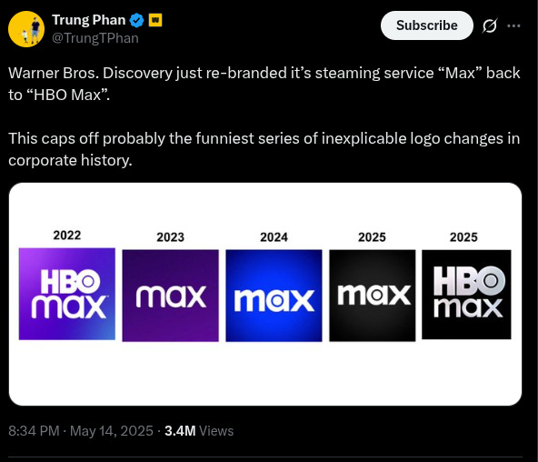 But where they excelled with their content, they lost the plot elsewhere. The platform was bogged down by poor technical execution. It made strategic mistakes with pricing and branding. Infamously, they changed their logo so often that their own employees were confused. Max failed to make a dent in the market, growing by just 1-1.5% monthly, .