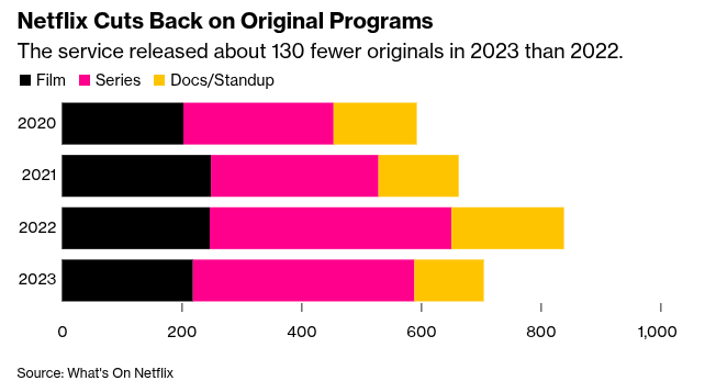 Netflix’s other bet was that it could make it more cost-effective to create content as well. The company thought it could churn out movies and TV shows in huge volumes, and then have an algorithm determine where it should double down, and where it should cut its losses. It began bombarding its customers with shows made to binge — with entire seasons released on the same day to maximize engagement. By 2022, Netflix was outspending almost every traditional studio in production budgets.