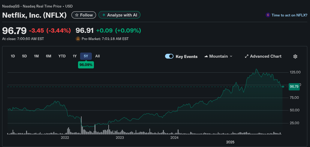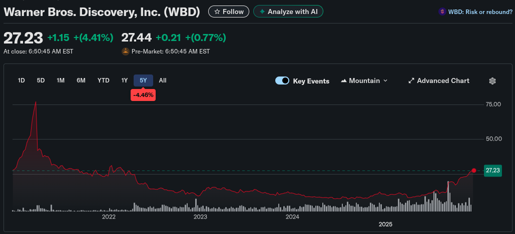 Their winning bid was quickly challenged by another bidder, Paramount-Skydance (or PSKY) — which produces the Mission: Impossible franchise. Backed by financier Jared Kushner, Donald Trump’s son-in-law, and the sovereign wealth funds of Saudi Arabia and Qatar, PSKY announced a hostile $108 billion counter-offer for all of WB’s business. It’s an all-cash offer, which seems to give investors more bang for their buck than Netflix.