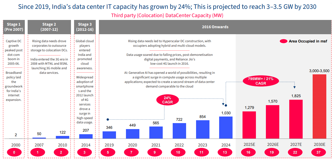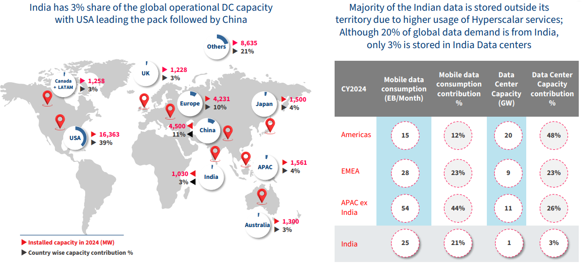 India’s data center boom is still in its early stages. We account for only 3% of global data center capacity, despite generating 20% of global data demand.
