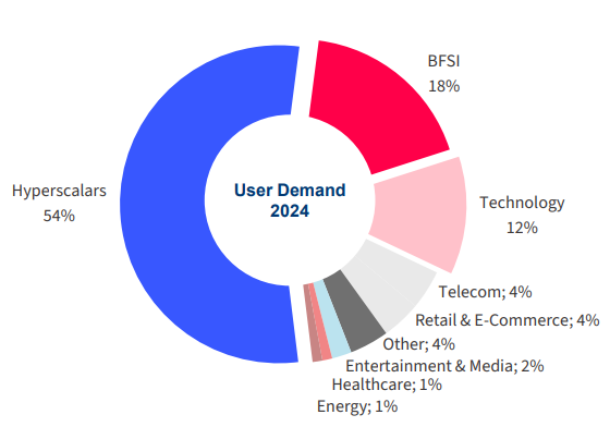 But interestingly, telecom hardly makes up 4% of the demand for data centers. Most demand comes from hyperscalers — cloud providers like AWS, Google Cloud, and Microsoft Azure, who service companies that need cloud computing power. Telcos don’t really use most of their own data center capacity.